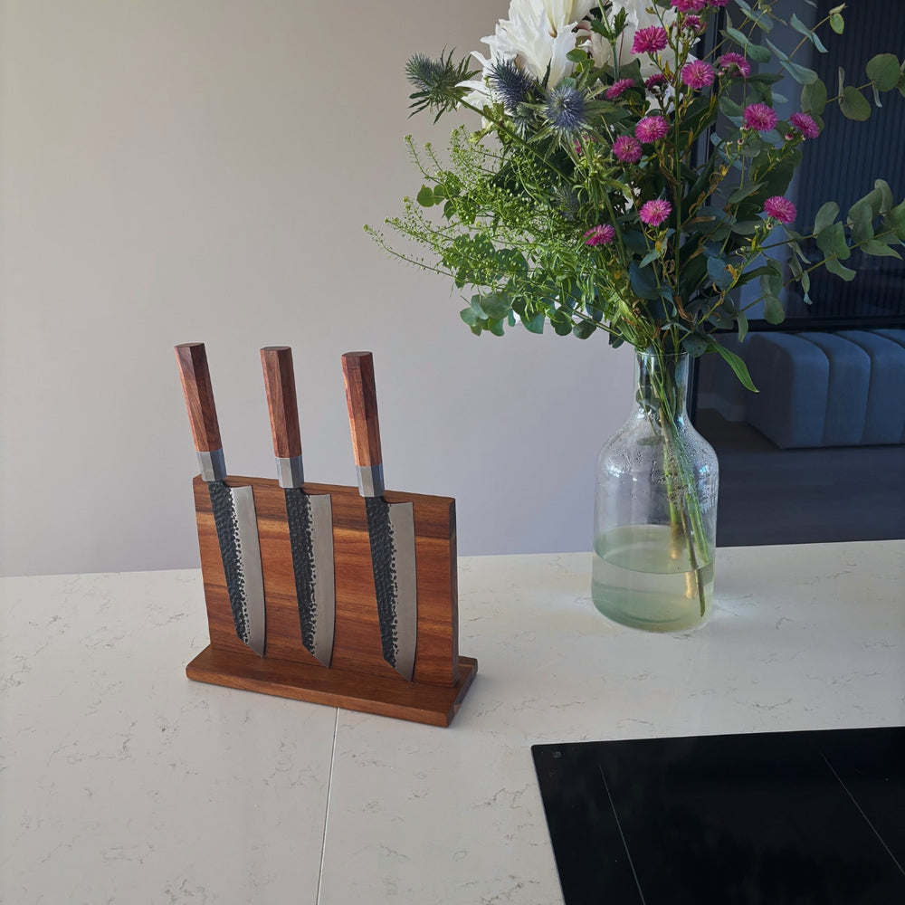 Ob du eine moderne Einrichtung oder eine warme, gemütliche Küche hast - unsere japanischen Messer fügen sich nahtlos in jeden Stil ein. Sie sind perfekt für alle, die ihrer Küche einen Hauch von Luxus und Eleganz verleihen wollen, aber gleichzeitig Wert auf Qualität und Präzision legen